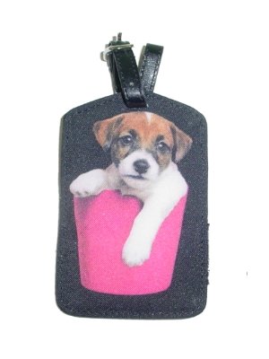 This 3" x 4" luggage tag features the art of Keith Kimberlin, a sweet little Jack Russell Terrier puppy in a flower pot! These tags are sturdy polyester with an adjustable 7" strap that buckles onto your luggage. Design on one side, clear window on the other to display your identification details.